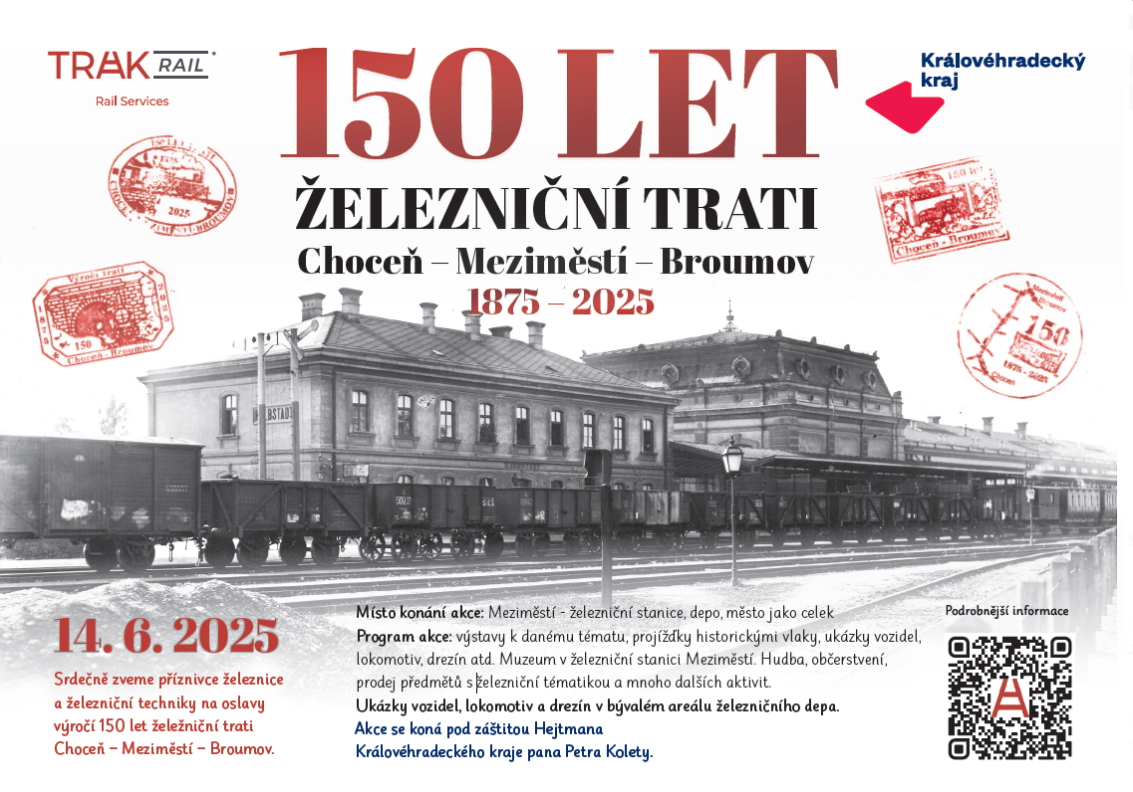 U příležitosti 150. výročí otevření trati Choceň – Meziměstí – Broumov se v sobotu 14. června 2025 uskuteční jedinečná událost plná historické techniky, atraktivních jízd historických vlaků, výstav i kulturního programu.