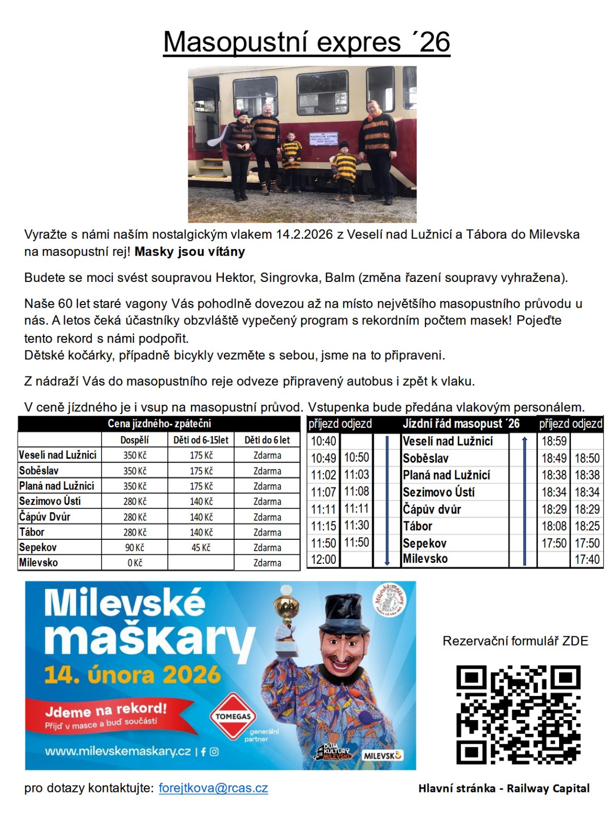 Místo konání: Veselí nad Lužnicí - Tábor - Milevsko