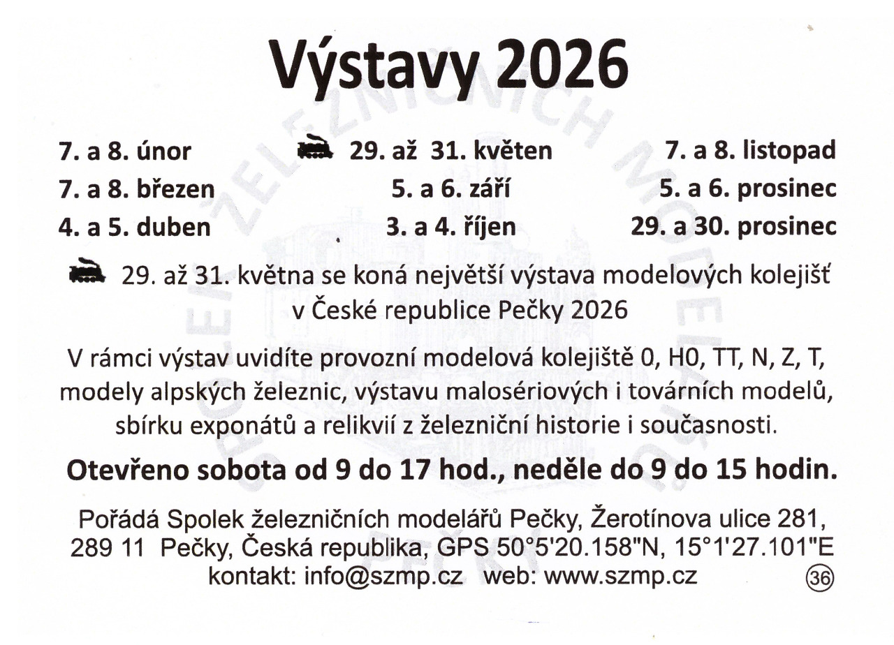 Archiv kalendáře 4.4.2026 - 5.4.2026Výstava železničních modelů v provozu