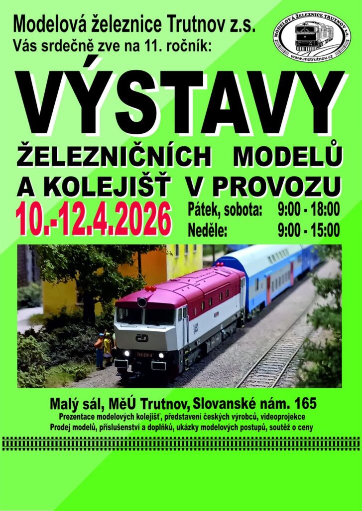 people_alt 10.4.2026 - 12.4.2026Výstava železničních modelů a kolejišť